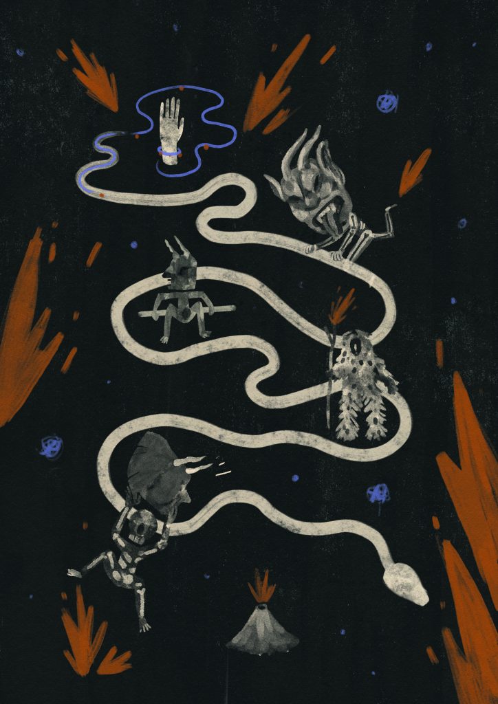 Isabel está muerta, y mamá dice que yo la maté. Desde entonces, todas las noches “eso” aparece. “La cosa” no es original. De hecho, lo tomé prestado de un libro que Isa me regaló; pero desde lo de Isa me es doloroso tan siquiera pensar en algo que me la recuerde. Era muy imaginativa, siempre dibujando paisajes imposibles, pero que de una u otra forma eran parecidos a las montañas y la vegetación que rodeaban nuestra casa, cercana al pueblo de Santa Bárbara. “La cosa” no tiene horario, pero esto no importa. En realidad, cuando aparezca, su mirada de odio la sentiré donde sea que esté. Mamá no me ayudará: desde la muerte de Isa y la huida de Papá, sus ojos, antes indiferentes a mi presencia, jamás me voltearon a mirar. Pero puedo ver que en su muñeca aún usa esa pulsera azul con detalles rojos que Isa y yo hicimos en la escuela una semana antes de que mi hermana intentara defenderme de papá. A veces, cuando puedo descansar de la sombra de odio que me persigue, todavía puedo oír el crujir del cuello de Isa al chocar con la mesa de noche al lado de mi cama, tras ser empujada por papá… El odio que me hizo agarrar mi lámpara y deformar su cara a golpes no se ha ido; de alguna manera, se ha traspasado a todo lo que hay a mi alrededor. Es como una oscuridad, muerta desde su concepción, que me mantiene cautiva en el fondo de todo su odio, asfixiándome cada segundo que “la cosa” ve que sigo viva. No hay nada más que eso. ¿Mi apariencia?, ¿mis gustos?… Mi nombre… Todo eso se hundió, no desde la muerte de Isa: desde hace mucho tiempo está hundido en esa oscuridad. Hoy, “la cosa” finalmente se ha decido a matarme. No puedo quejarme; en realidad, esperaba que lo hiciera. Solo quería irme sin más, dejar de luchar contra ese lugar de odio que inundaba cada aspecto de mi vida, escapar de esta oscuridad que me consumía. En ese último suspiro, en ese último momento de lucidez, descubrí en esa masa amorfa de oscuridad, que con todo su odio trataba de romperme el cuello, una pequeña pulsera azul con detalles rojos. Ahí, al sonar de un crujido, me volví uno con la oscuridad.
